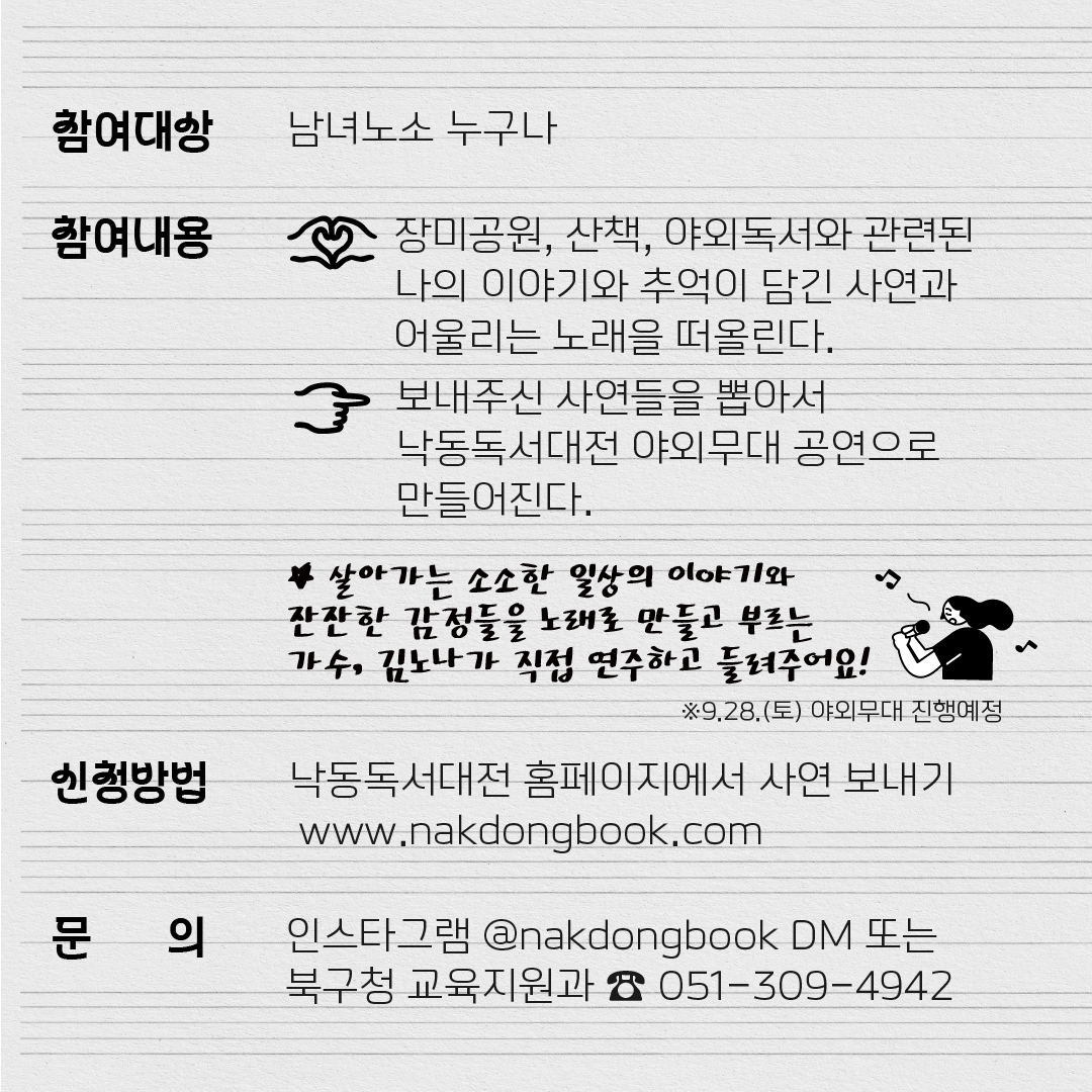 책의 도시 '북구'의 정체성을 살린 '북구'다운 독서문화축제 '제5회 낙동독서대전'은 전국 기초 지자체에서 주최/주관하는 유일한 독서대전입니다.