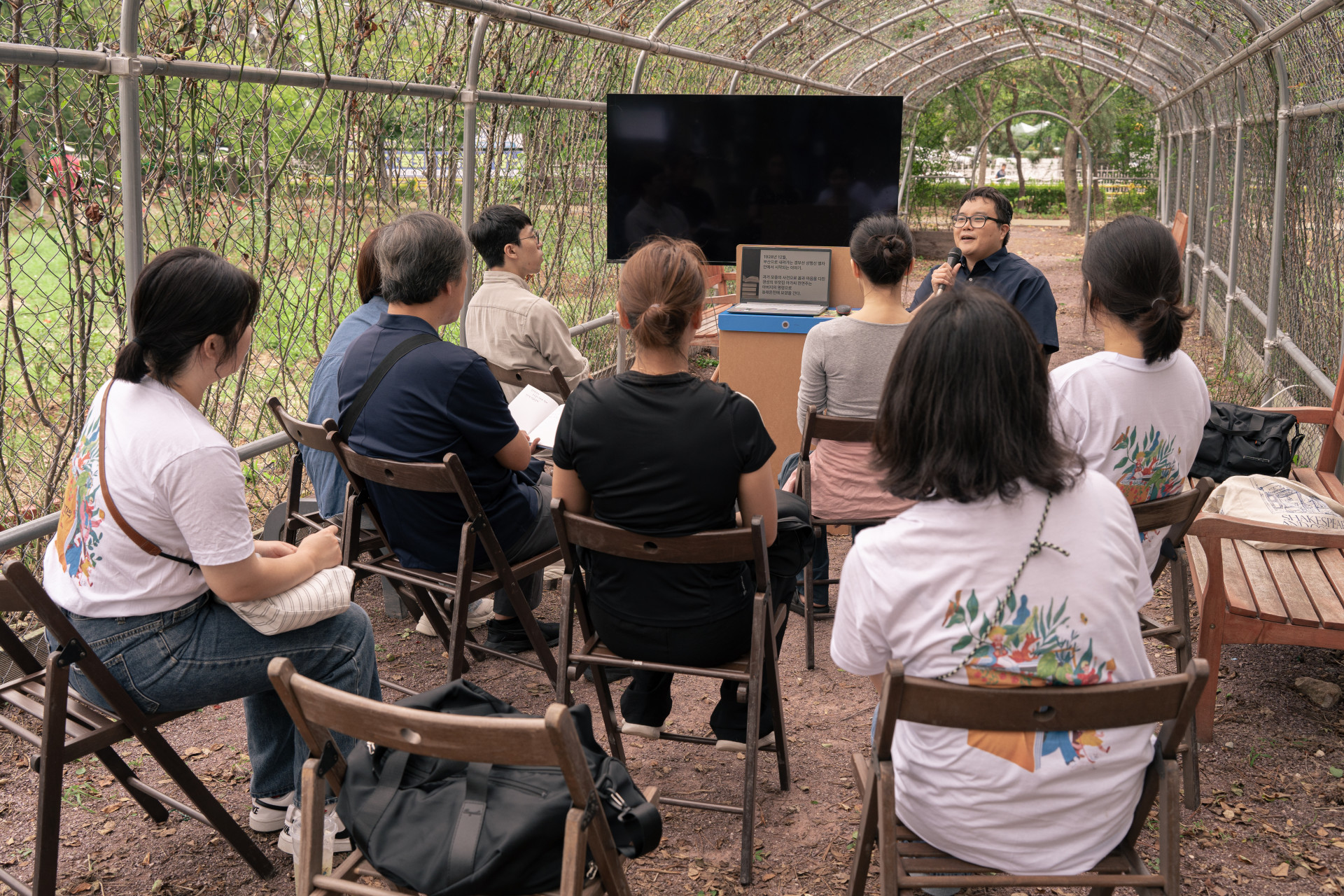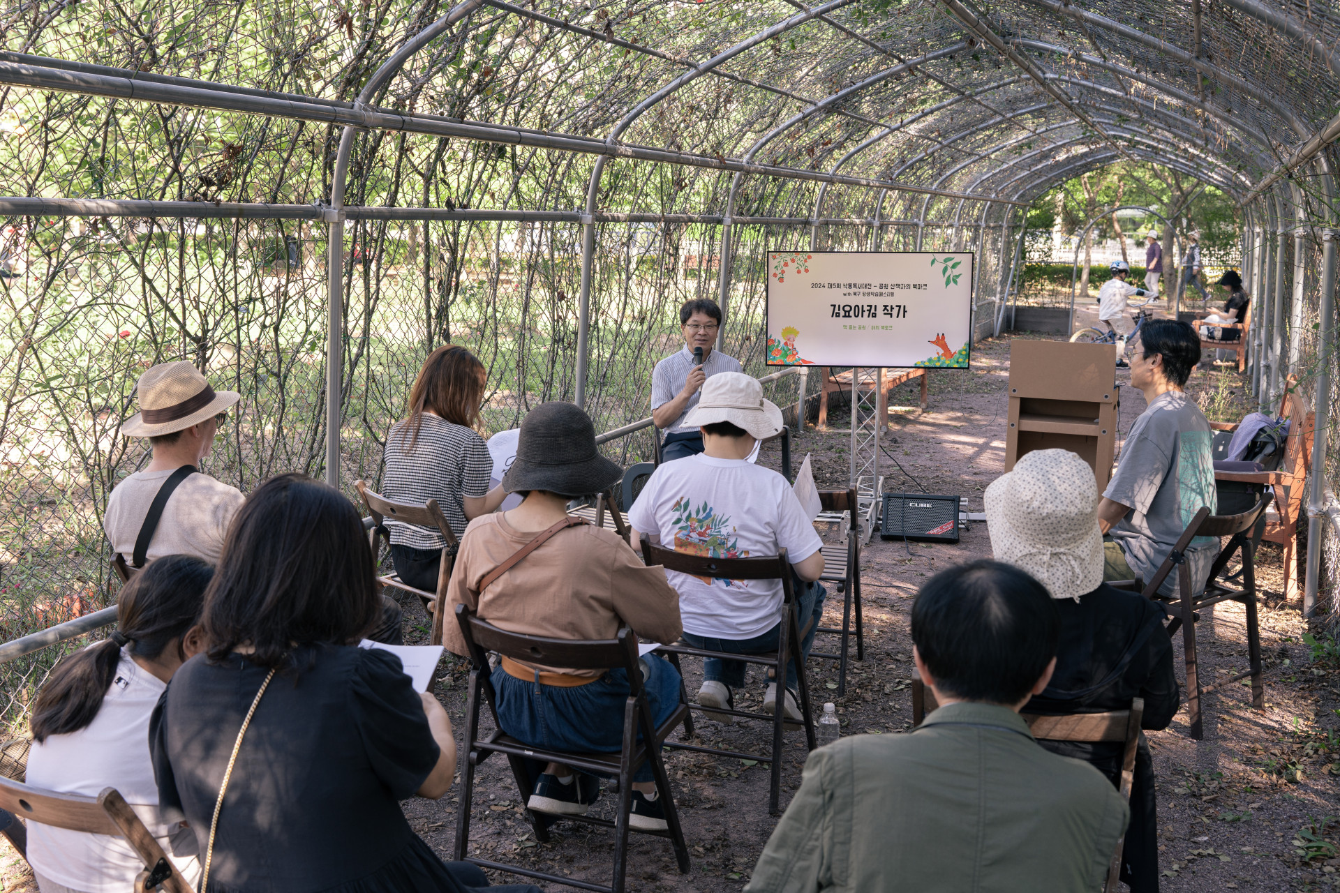 화명장미공원만의 식물터널 속에서 진행된 책, 공원, 독서모임, 지역작가 등의 주제와 만나며 친근하게 소통할 수 있는 소규모 야외 북토크가 열렸습니다.
