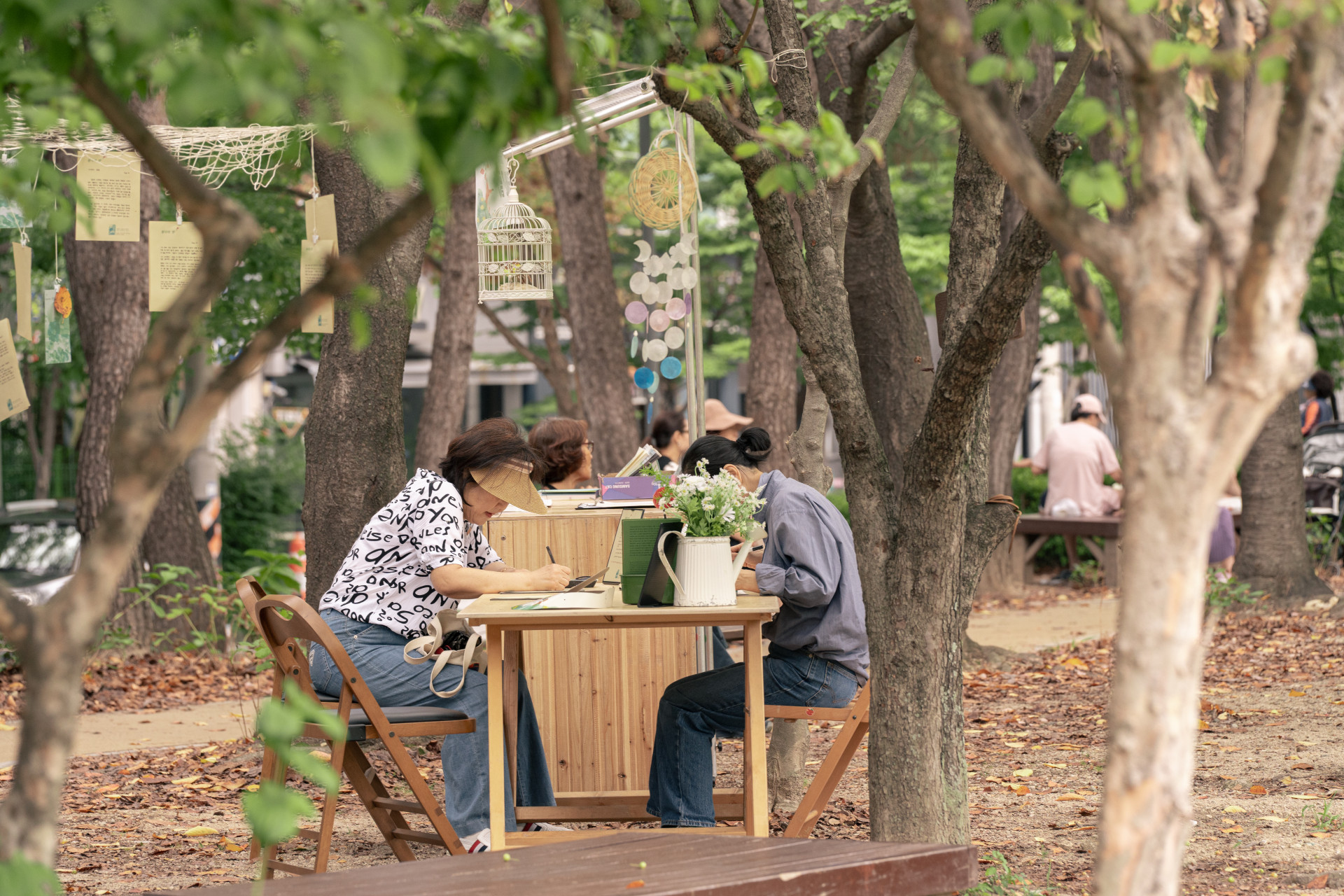 공원에서 만난 쉼과 힐링 타임, 필사의 시간!